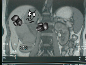 I went home with a print out from the Physician’s Desk Reference on MTC. It was a tumor in the C-cells that release calcitonin, hence the high numbers and assumption of lactose intolerance. I also went home with a tired and sick body from the giant bottle of barium I had to drink for the quick CT scan the radiologists were kind enough to perform. I woke up the next day with, not an upset stomach, but extremely livid one, and looked up MTC. The results were scary, telling me I was going to die in 3 months, or I will never be happy again, or that it will spread throughout my body. I shut down my computer then and there, and decided I had enough for the day.